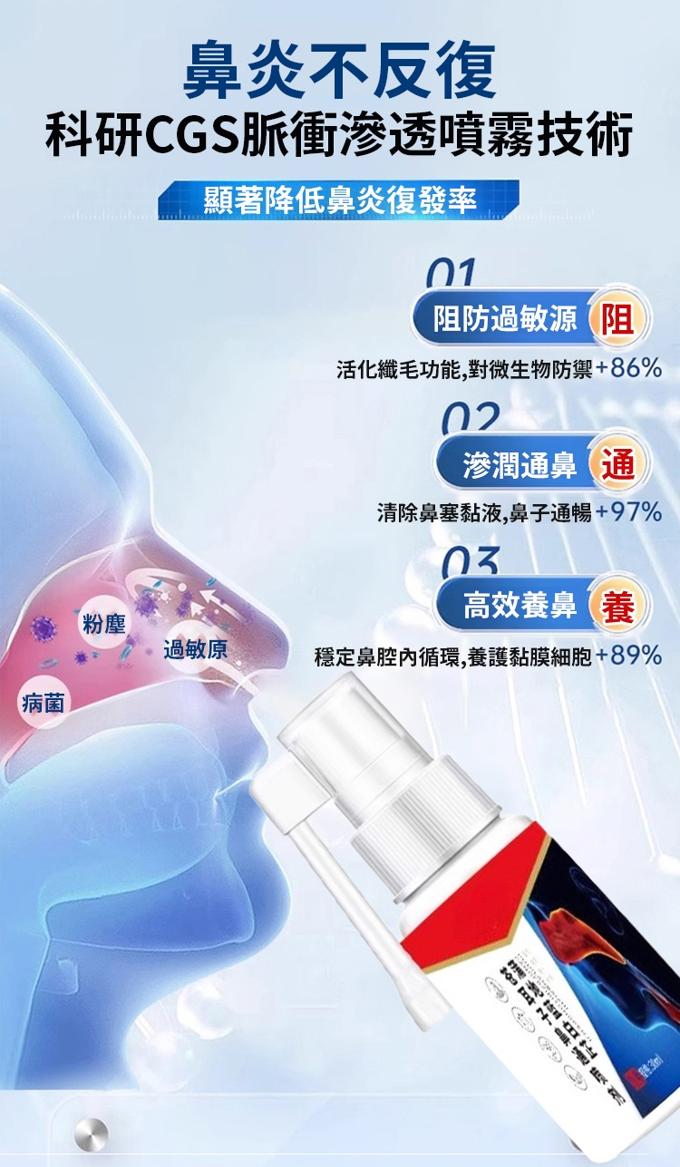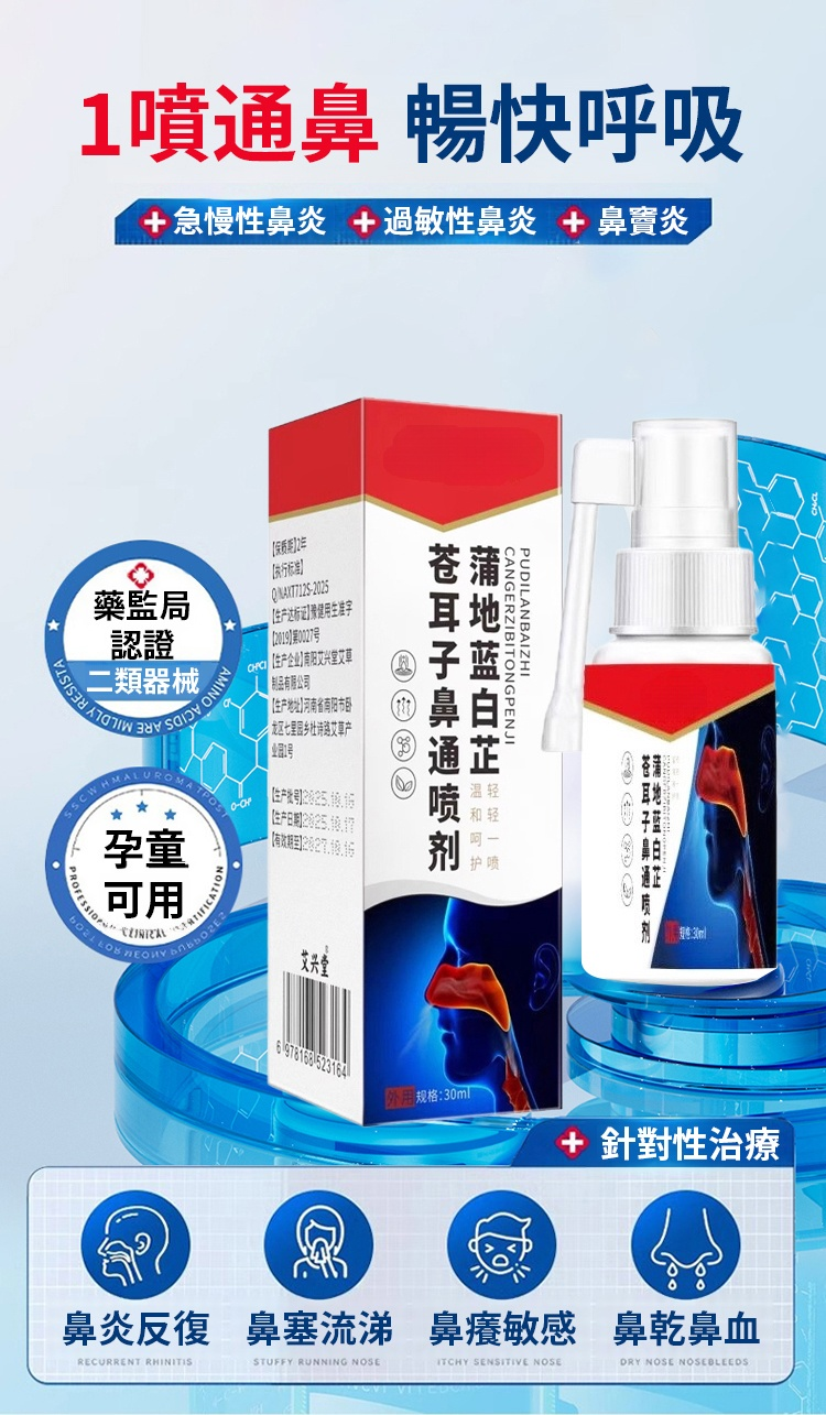 醫用級專抹鼻炎,一噴呼吸順暢,草本精華,安全放心